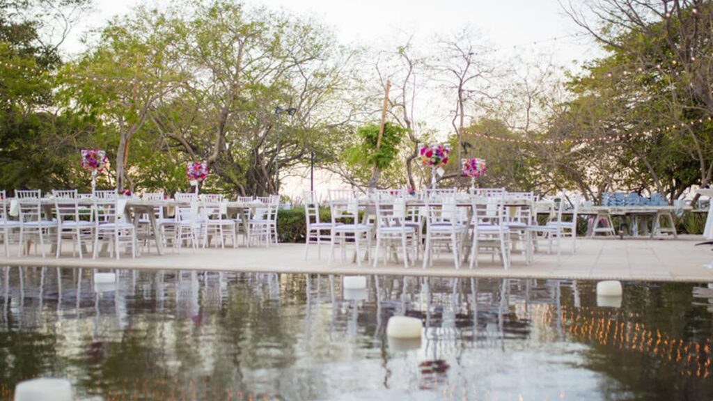 Base packages typically include a semi-private dinner at a resort restaurant. Upgraded tiers provide a fully private reception with a set menu, open bar, and service staff. Per-person pricing makes budgeting straightforward. All inclusive resorts in Guanacaste offer strong value here since meals and drinks are already covered in the resort stay, so you’re building on what’s already included rather than starting from scratch.