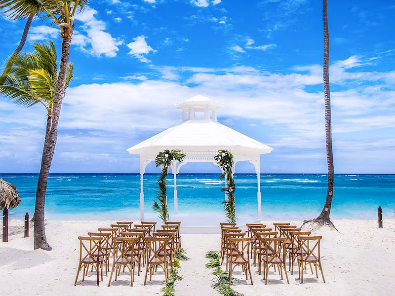 Family friendly destination wedding packages in Punta Cana typically include a ceremony setup at a scenic location (beach, garden, or gazebo), a wedding coordinator, basic decor such as chair setup and an arch or altar, a bouquet and boutonniere, a wedding cake, and a champagne toast. Many packages also include a reception with a set number of guests, music, and professional photography. Family-focused upgrades may include children’s reception meals, kid-friendly entertainment, group excursion discounts, and welcome amenities for young guests. Most resorts offer multiple package tiers, allowing you to add extras like videography, spa treatments, and enhanced floral arrangements.